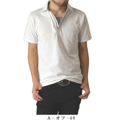 ポロシャツ メンズ 半袖 フェイクレイヤード ボーダー使いスキッパー ゴルフウェア 送料無料 通販M15【4Z0334】